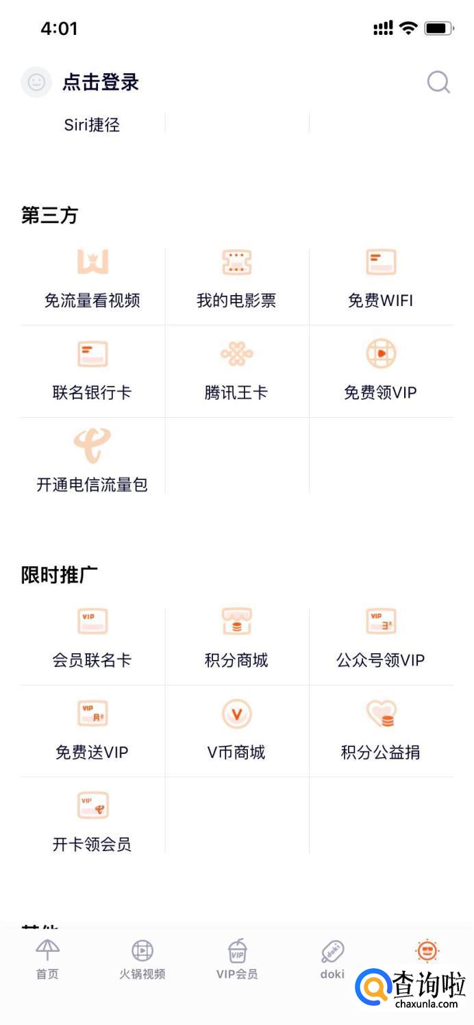 首先,进入腾讯视频,点击右下角个人中心,可以看到第三方和限时推广里都有免费领VIP的活动,可以一一点击进去查看。