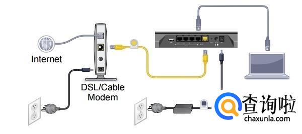 接下来,我们按照无线路由器上的说明书将电脑、宽带和无线路由器连接好。