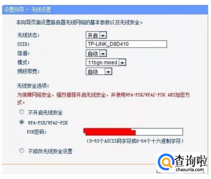 接下来我们需要将无线状态开启,如果想要设置密码的话就在下方的PSK密码后面输入需要设置的密码。设置好之后点击下一步就好了。