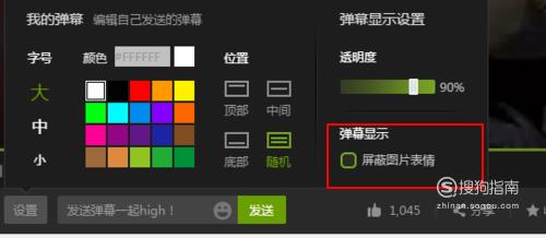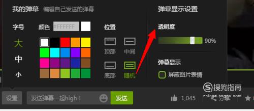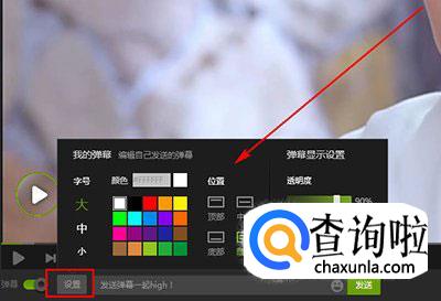 在控制弹幕的滑块右边,有设置按钮,点击弹出弹幕设置页面。