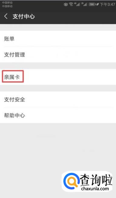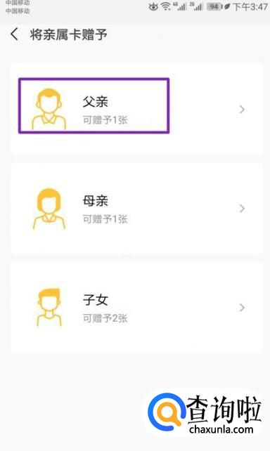 弹出的界面,我们点击亲属卡;