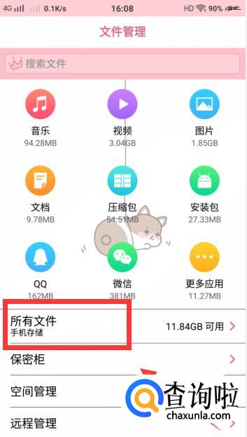 另外,点击【文件管理】,并进入,点击【所有文件】并进入。