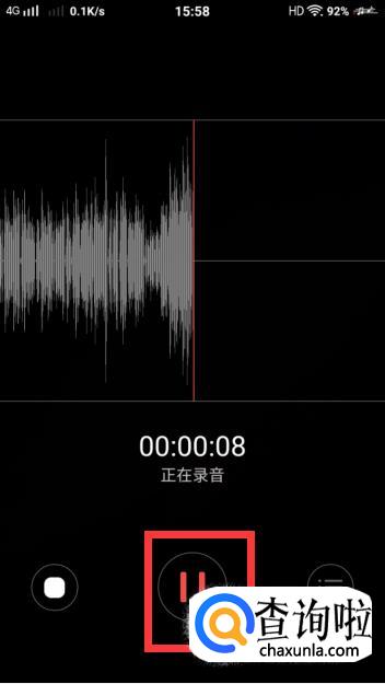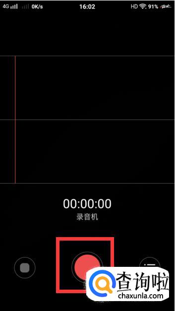 进入录音机后,点击中间的红色圆圈一下就可以开始录音了。