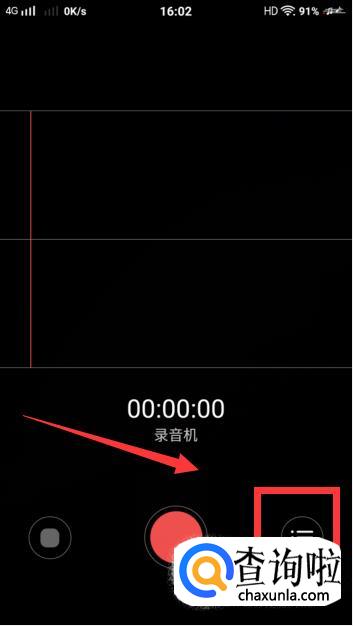 然后点击录音界面中的右下角的图标,并进入。