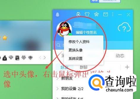 选中QQ头像,点击鼠标右键弹出选项,选择“更换头像”项。