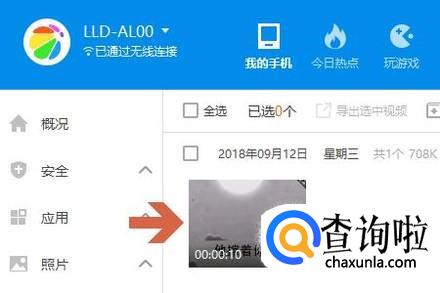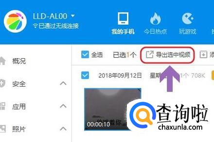 不过通过这种连接方法是可以相互之间传送文件的,比如下图我们打开手机里的视频文件,并且可以将其导出到电脑;