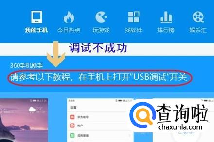 如果通过数据线出现以下的调试不成功的界面,那我们返回到电脑端的360手机助手上,此时左侧会出现一个二维码图片,如图二...