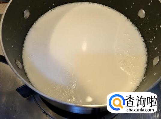 将买来的牛奶放入锅里面,将其煮制稠状,如图所示。