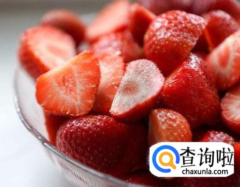 去超市买一些新鲜的草莓,将其洗干净,将其切成小块,如图所示。