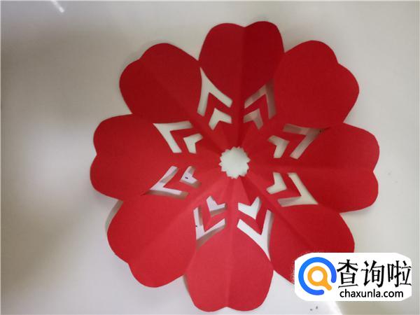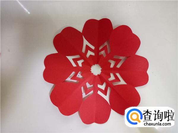 将折纸一层一层的打开,即可得到简单好看的心连心剪纸,如图所示。