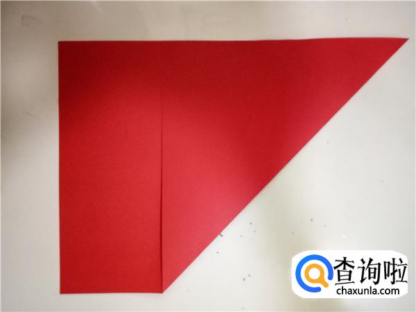 将纸的长边和短边对齐,折出一个三角形,如图所示。
