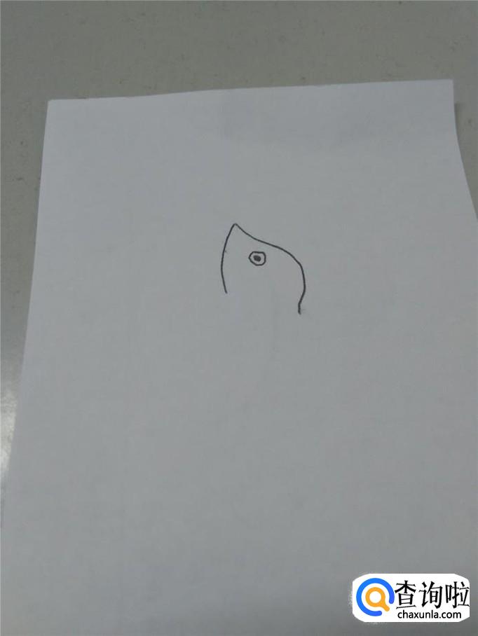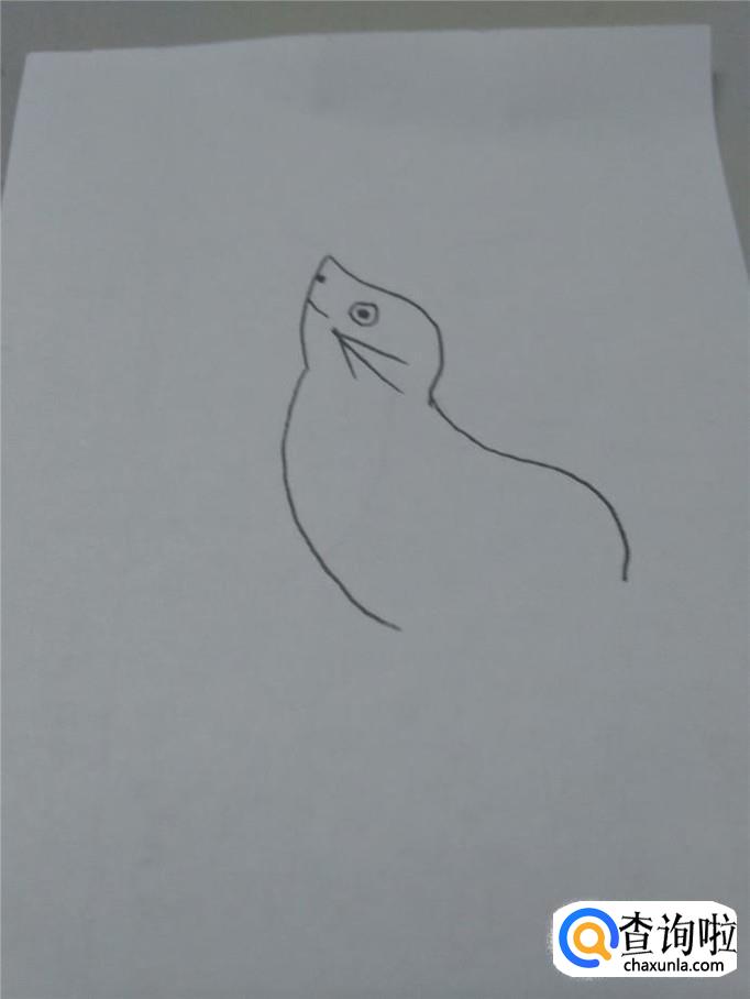 先用笔在纸上画出海豹的头,它的鼻子是尖的,后脑勺圆圆的,左边的弧线弧度要小一些,表示它的下巴。
