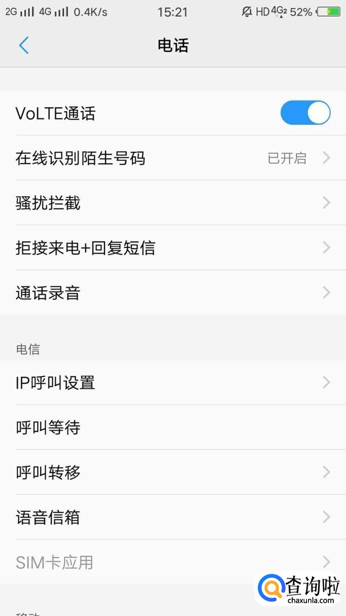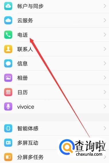 进入手机设置之后,找到电话选项,如图所示。