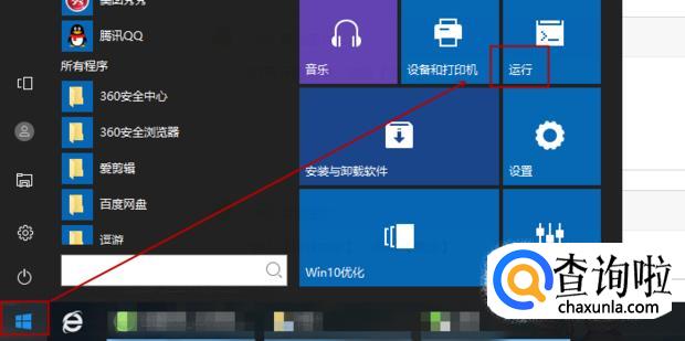 打开开始菜单,选择【运行】。