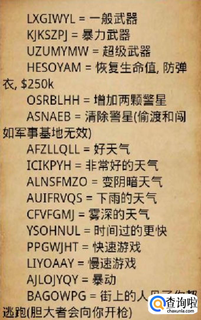 秘籍玩法。所谓秘籍玩法就是开外挂,在游戏中可能有一些比较难以获得的东西,你只需要输入相应的秘籍指令就可以获得它,不顾秘籍偶尔用用就好,否则会影响游戏的乐趣。下图是我为大家总结的部分游戏秘籍。