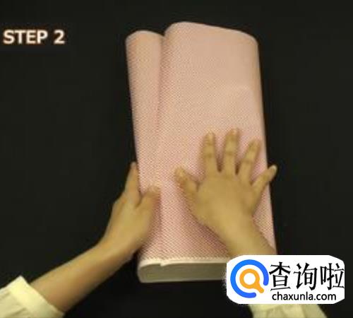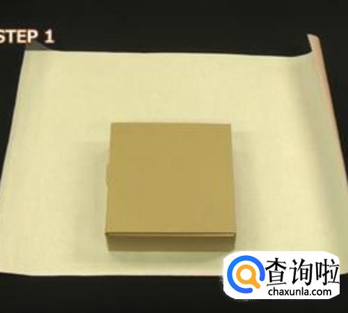 首先根据礼物的大小和朋友的喜爱颜色,选择包装礼物的纸,将礼物盒子放在距离纸张底部大约2cm处,如图所示;