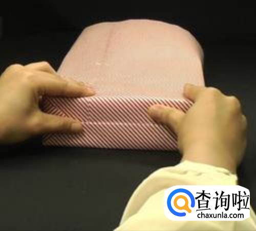 最后把底部的纸张沿着礼物盒向上折叠,尽量不能有褶皱,如图所示;
