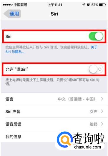 「 设置 — 通用 — Siri 」