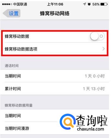 「 设置 — 蜂窝移动网络 」
