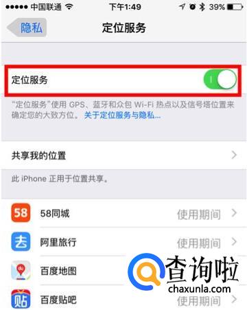 「 设置 — 隐私 — 定位服务 」