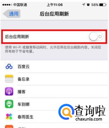 「 设置 — 通用 — 后台应用刷新 」
