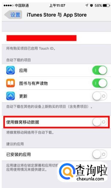「 设置 — iTunes Store 与 App Store — 关闭使用蜂窝移动数据 」