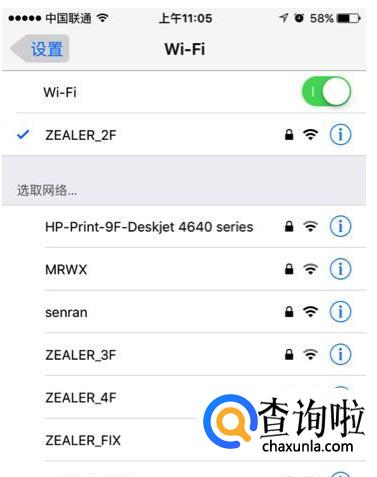 「 设置 — Wi-Fi 」