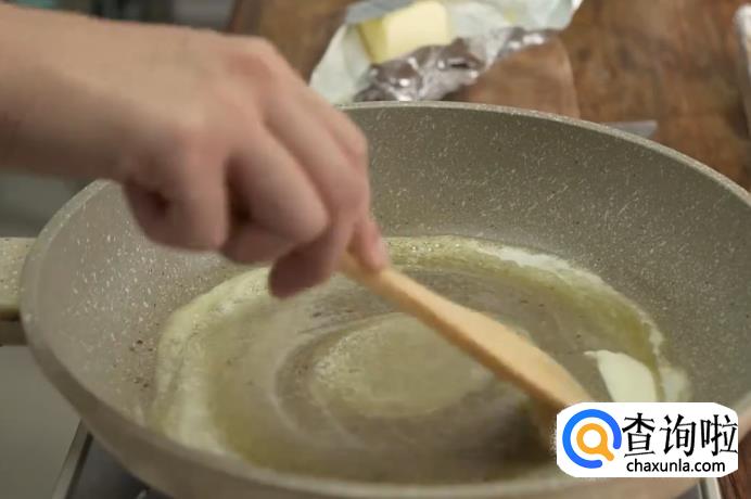 切适量大小的黄油,放入热锅中进行融化。