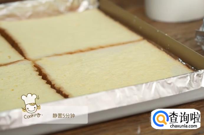 接下来,将吐司面包片静止5分钟左右,使吐司更好地吸收汁液。
