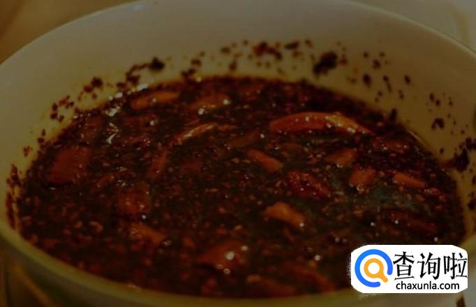 锅中加油适量,油8分热时加入葱姜蒜,新鲜红辣椒爆炒,然后舀起,,乘于碗中