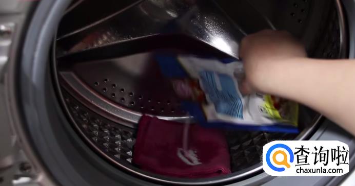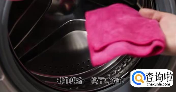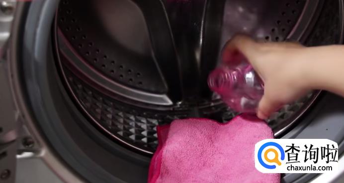 接下来我们准备一块干净的抹布,将剩下的溶液倒在抹布上,然后将其放入洗衣机里。