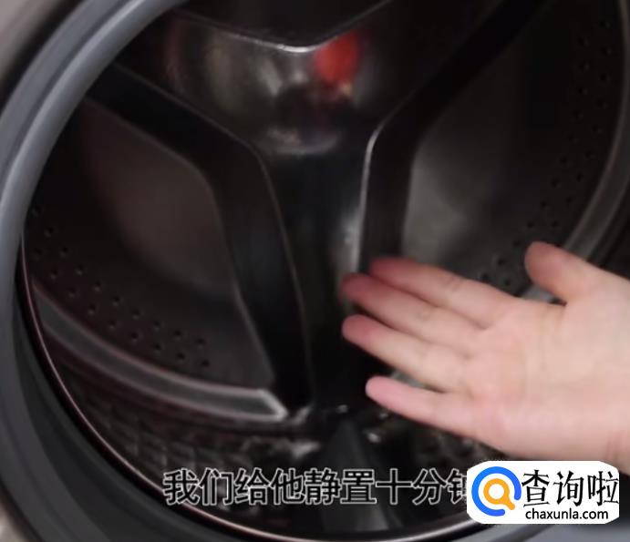 然后我们将其喷在洗衣机的内筒壁上。喷洒之后,静置十分钟。