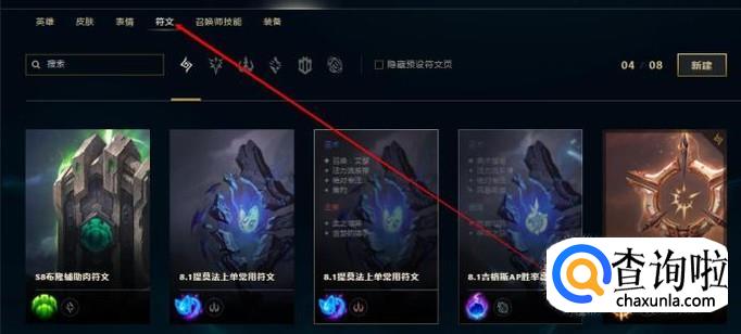 或者是点击右侧的“新建”,新建一个符文页。