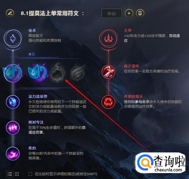 在具体设置中按你的需求点击相应的符文,点击保存即可。