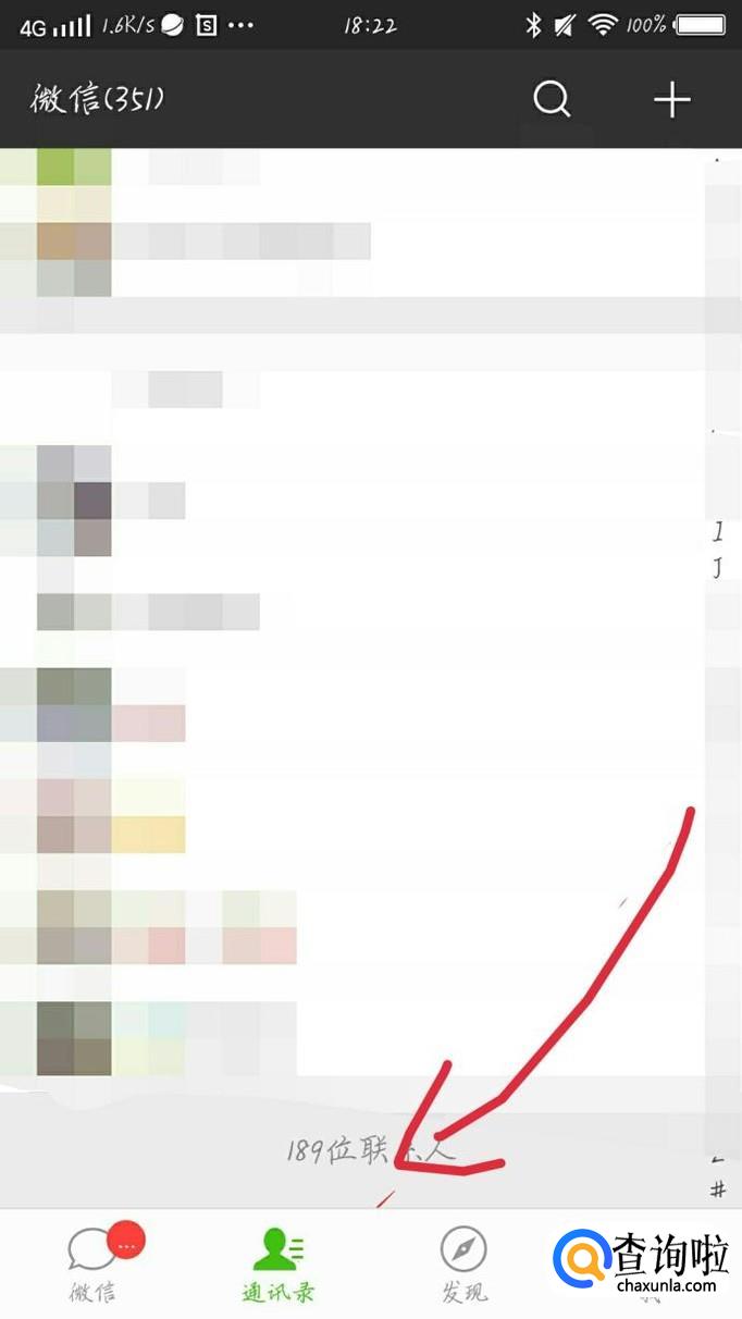 在这里你可以看到你有多少个微信联系人,如图1箭头所示。不用自己一个个去数。