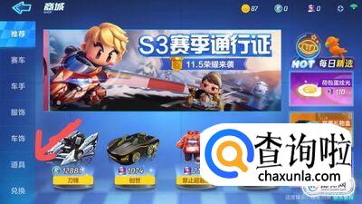 进入商城界面后,点击左侧的“道具”选项。