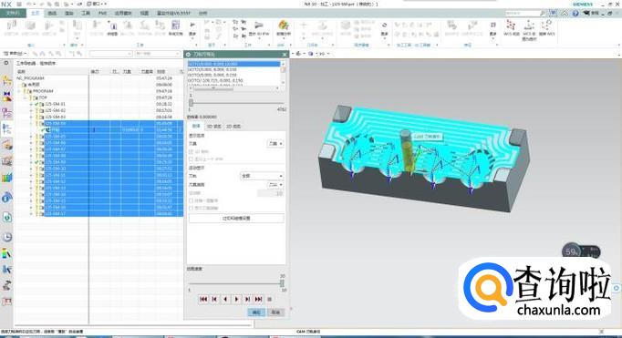造型完毕之后可以直接进入“加工”模块编程了,可以说是非常方便的。图片中是编好的程序在进行仿真。检查无误后就可以上机床进行加工了。