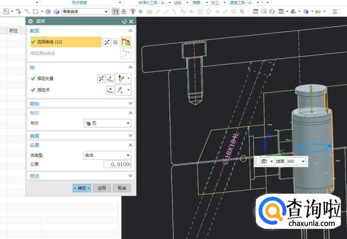 下面是“旋转”命令,可以根据线条轮廓旋转出你想要的实体。图片中是设计并造型好的注塑模具。
