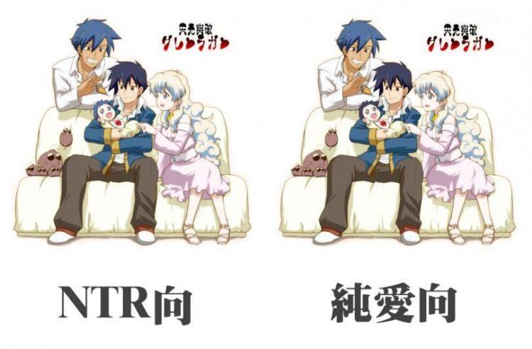 但是,牛头人的英文简称NTR在日文翻译中为“寝取る”(Ne To Ru),即“被他人强占配偶或对象”。
