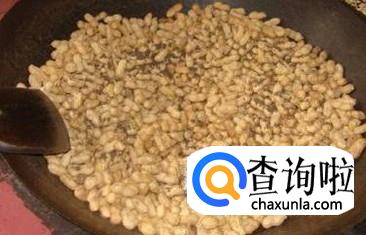 将装了沙子的铁锅放在火上加热,大约十五分钟后沙子便会变热,此时将花生放在里面,并且用铲子来翻炒,使花生完全被沙子掩埋在里面即可。