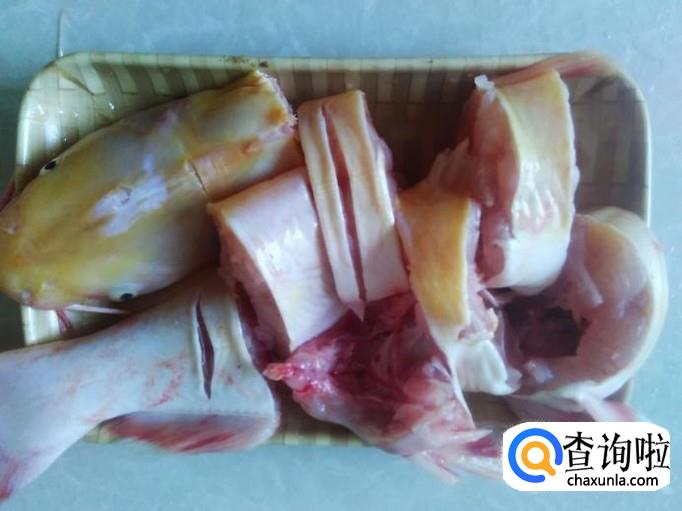 今天买的骨鱼是粉白色的。把鱼清理干净,然后切成一圈圈。