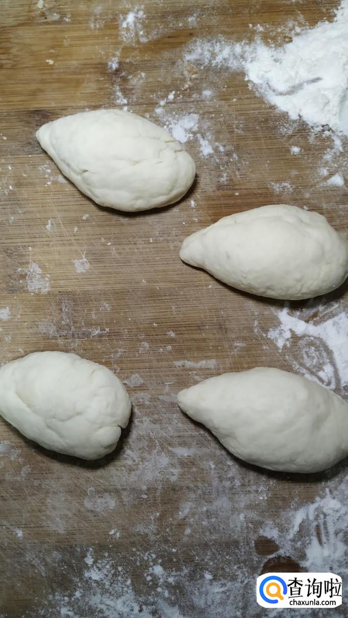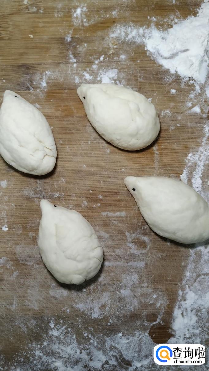 将醒好的面团,再用手揉匀,然后做成水滴的形状,水滴的形状是一边儿大,一边儿小,这是小刺猬的轮廓。