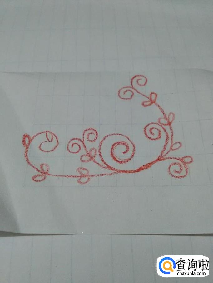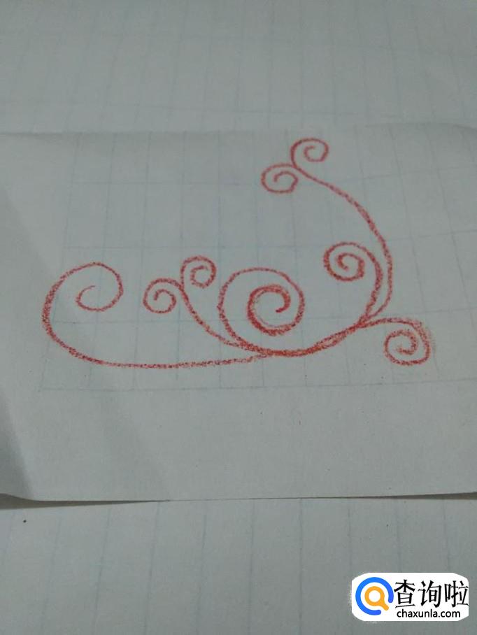 先用彩笔在纸上画一条曲线,两端卷成螺旋状,表示藤蔓。