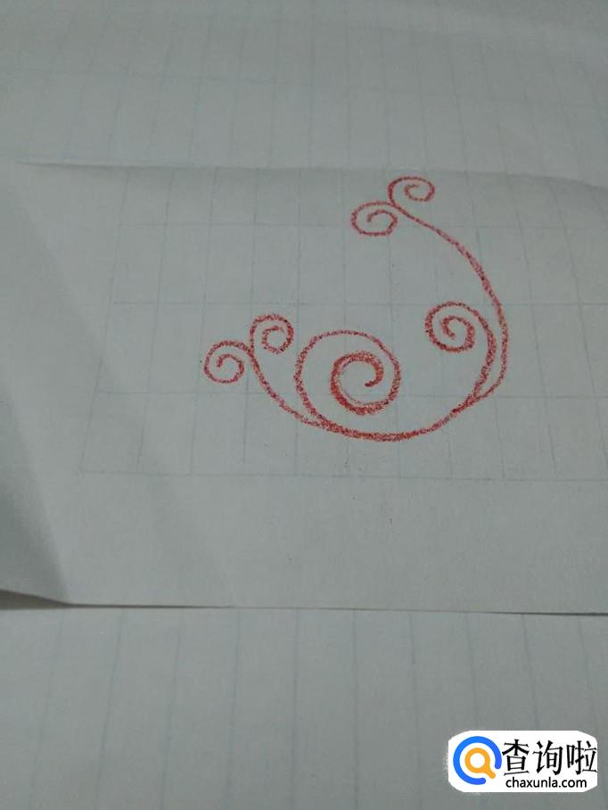 再用彩笔在曲线右侧画一条分叉的曲线,末端也卷成螺旋状。