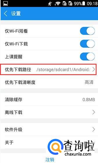 进入到设置界面以后,在设置界面中可以看到"优先下载路径”这个功能,在其右侧还可以看到当前下载到文件夹位置。点击优先下载路径这个功能,进入到选择下载路径界面中,点击设备旁边的倒三角按钮,就可以根据容量大小选择下