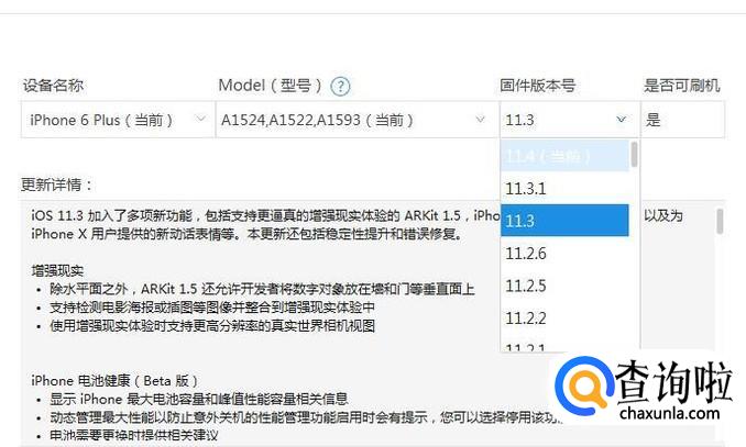 如下图,选择我们想要固件版本并点击是否可刷机(选择是)
