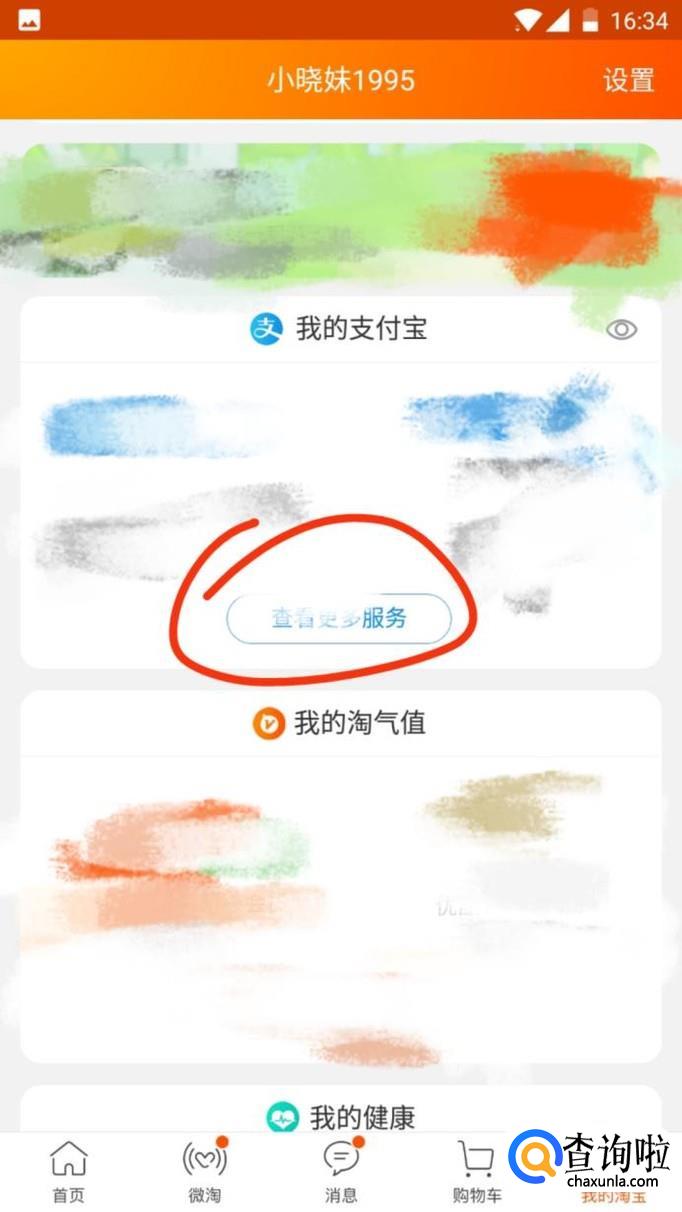 下滑找到“支付宝”,点击“查看更多服务”