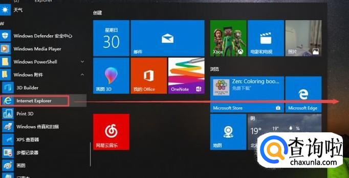 弹出的界面,我们就看到IE浏览器了,我们左击选中IE浏览器不要松,然后直接拉到桌面处;