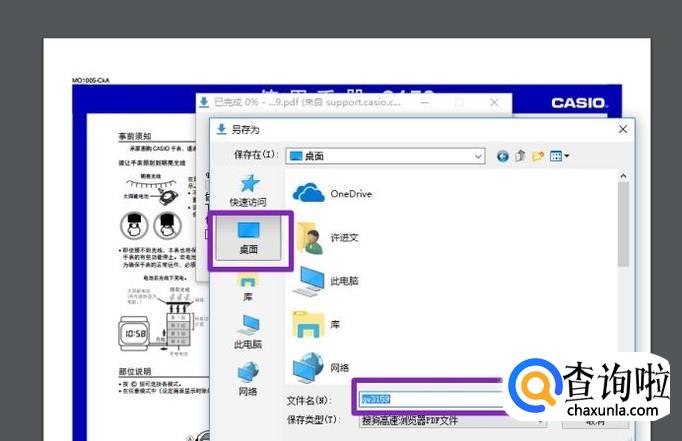 弹出的界面,我们选择保存的路径为桌面,文件名不用更改,然后点击保存;