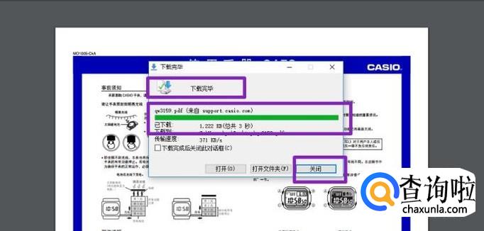 之后说明书就被我们下载下来了,我们点击关闭即可;